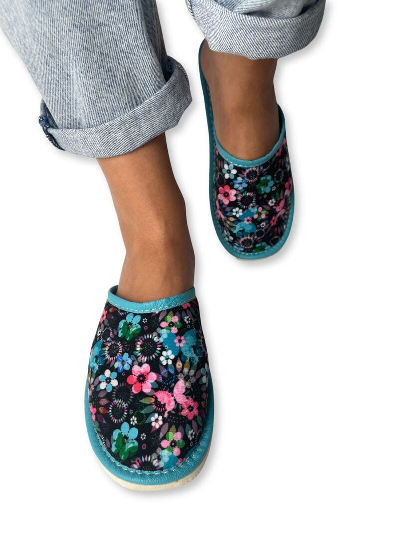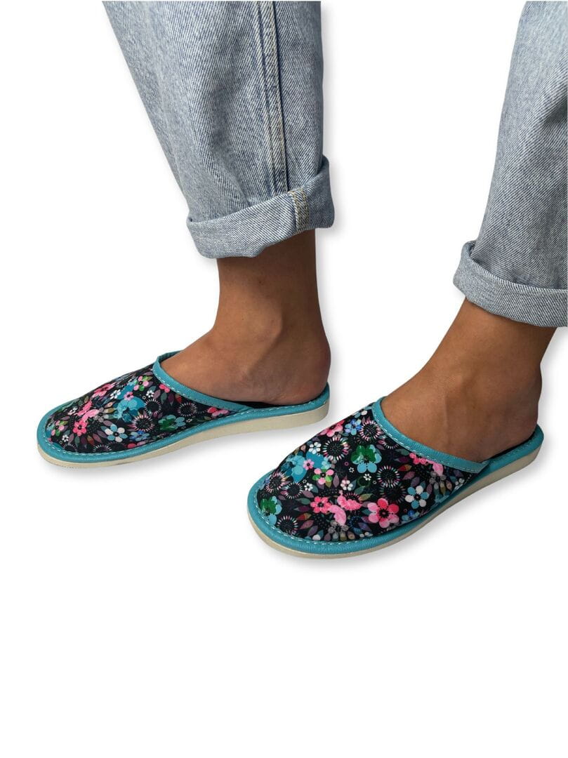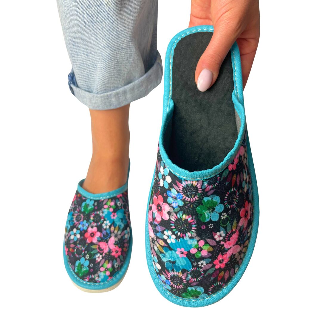 Klapki Materiałowe Damskie Zakryte Kwiaty Modern